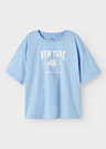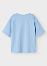 Name It Kids meiteņu T-krekls Veen ir lieliska izvēle ikdienas valkāšanai. Tas ir ar īsām piedurknēm un apaļu kakla izgriezumu, kas nodrošina komfortu un brīvību kustībām. Priekšpusē ir uzraksts un drukāts attēls, kas piešķir kreklam stilīgu un modernu izskatu.