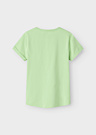 Name It Kids meiteņu T-krekls Vix ir jauks un ikdienišķs apģērbs, kas lieliski piemērots dažādām situācijām. Tas ir izgatavots ar īsām piedurknēm un apaļu kakla izgriezumu, nodrošinot komfortu un brīvību kustībām. Priekšpusē ir pievilcīgs drukas attēls un uzraksts, kas piešķir kreklam unikālu un stilīgu izskatu.