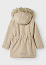 Name It Kids meiteņu ziemas parka Milla ir praktiska un stilīga izvēle aukstajiem ziemas mēnešiem. Parkai ir noņemama kapuce ar dekoratīvu malu, kas piešķir papildu šarmu un funkcionalitāti. Priekšpusē ir kabatas ar spiedpogām, kas nodrošina ērtu un drošu mantu glabāšanu, savukārt piedurkņu galos ir valnītis, kas pasargā no vēja. Izmantojot BIONIC-FINISH ECO tehnoloģiju, šī parka atgrūž ūdeni un netīrumus, saglabā krāsu, ātri žūst un ir izturīga pret laikapstākļiem, vienlaikus nodrošinot elpojošu komfortu aktīvai darbošanās laikā.
