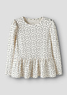Name It mini meiteņu blūze Tenna ar apaļu kakla izgriezumu ir divkrāsu un šūta no valnīša auduma. \nTā ir elastīga un patīkama valkāšanai, labi noder ikdienas gaitām un brīvā laika nodarbēm. \nApakšmalu papildina mīlīga volānu apdare, kas blūzei piešķir viegli rotaļīgu noskaņu.