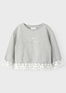 Mini meiteņu džemperis Banne ir jauks un ērts apģērbs, kas lieliski piemērots ikdienas valkāšanai. Tam ir apaļš kakla izgriezums un brīvs dizains, kas nodrošina komfortu un kustību brīvību. Džemperis ir elastīgs, un tā piedurkņu galos un apakšmalā ir pievienota mežģīne, kas piešķir tam elegantu izskatu.