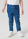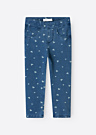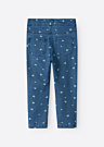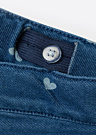 Mini meiteņu džinsa bikses Salli ir lielisks papildinājums jebkurai garderobei. Tās izceļas ar jauku un interesantu rakstu, kas piešķir tām unikālu izskatu. Biksēm ir šauri staru gali un vidēja augstuma jostasvieta, kas nodrošina komfortablu un stilīgu valkāšanu. Elastīgais materiāls un tuneļa gumija ar pogām iekšpusē ļauj viegli pielāgot apkārtmēru, nodrošinot perfektu piegulšanu.