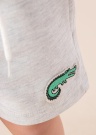 Vienkārši Name It Mini šorti der valkāšanai vasarā. Ērti patīkami mīksti šorti ir ar elastīgu jostasvietu un ar platiem staru galiem. Sānos atvērtas kabatas, uz jostas sasiešanas lentes un uz kreisās bikšu staras superīga bilde. Apkārtmēru ļauj regulēt tuneļa gumija ar pogām iekšpusē. Foto: augums 98 cm valkā 98 izmēru.