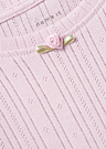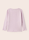 Name It Mini meiteņu T-krekls Silke ir jauks un mīksts apģērbs, kas piemērots jebkurai mazajai modes cienītājai. Krekls ir ar garām piedurknēm un apaļu kakla izgriezumu, kas nodrošina komfortu un stilīgu izskatu. Reljefa raksts virspusē un dekoratīvā detaļa priekšpusē piešķir kreklam īpašu šarmu, savukārt apburošā riša uz malas un valnītis uz apkakles piešķir tam elegantu akcentu.