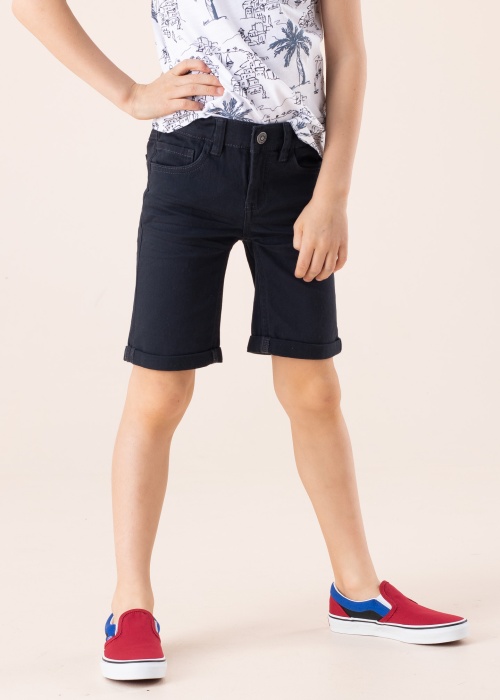 Slim piegriezuma Name IT šorti Sofus ir daudzpusīgs apģērbs, ko valkāt vasarā gan ikdienā, gan dažos svarīgākos notikumos. Bikses aizdarāmas priekšpusē ar metāla āķi un rāvējslēdzēju, priekšpusē un aizmugurē divas atvērta dizaina kabatas. Lai izveidotu labāku piemērotību, jostas vietu iespējams regulēt ar iekšpusē esošo tuneļa gumiju un uz augšu uzlocītie staru gali rada apģērbam raksturīgu formu un solīdāku izskatu. Kokvilnas audums ir patiesi ērts un ādai draudzīgs! Modeļa augums 130 cm, valkā 122. izmēru.