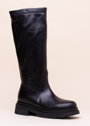 Augstās kājas NeroGiardini zābakiem ir mūsdienīgs, spēcīgs izskats un tie ir ļoti ērti! Zābaki ar jauku platu kāju daļu ir pārklāti ar gludu ādu, un augšstilba ārmalā ir neliels metāla logotips. Iekšpusē ir līdz pusei atverams rāvējslēdzējs, kas atvieglo uzvilkšanu kājā, un ādas iekšpusē ir patīkami polsterēta ādas zolīte. Mēs iesakām pārklāt gatavo zolīti ar bišu vasku, lai novērstu mitruma iekļūšanu apavu iekšpusē. Apakšstilba augstums ir 37 cm, apakšstilba apkārtmērs ir 40,5 cm. 39. izmēra svars ir 600 g. Krāsa: melna.