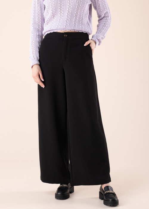 Plašās un platās Noisy May bikses, kas seko aktuālajām tendencēm, ir lieliska izvēle pārliecinātai sievietei, kurai patīk eksperimentēt ar jauniem un aizraujošiem stiliem. High Waist viduklis ir nostiprināts ar klasisku sprādzes aizdari un pogu, mugura izgatavota no staipīga materiāla, lai viduklis būtu ērts un lieliski turētos pie ķermeņa. No krītoša materiāla bikšu sānus ilustrē divas atvērtas kabatas, aizmugurē divas imitācijas iekškabatas. Droši valkājiet apavus visa gada garumā! Modelis ir 177 cm garš un valkā S-32 izmēru. Materiāls: 100% poliesters. Krāsa: melna.