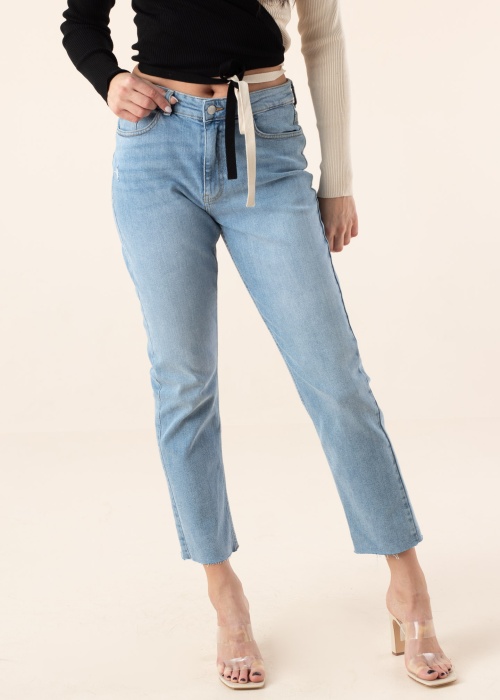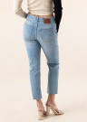 Stilīgas Noisy May džinsa bikses der valkāšanai ikdienā. Modernas no bieza auduma džinsa bikses ir ar pazeminātu jostasvietu un ar taisnām starām. Prece- regular Fit piegriezuma un valkāšanas komfortu nodrošina materiāla elastīgums. Vidukļa dala aizdarāma ar pogu un rāvējslēdzēju, priekšpusē un aizmugurē ir atvērtas kabatas. Akcentu pievieno interesants dizains bikšu galos. Foto: augums 176 cm valkā 27/32 izmēru.