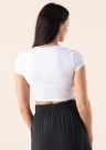 Noisy May īsā blūze Asta ir jauneklīga un vasarīga. Blūzei ir īsas piedurknes, V veida izgriezums un priekšpusē dekoratīva aukla. Modele ir 176 cm gara, valkā S izmēru. Materiāls: kokvilna 95%, elastāns 5%.