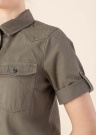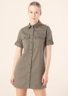 Moderna Noisy May kleita ir inspirētas no stila, ērta un praktiska. Jauneklīga neelastīga denima kleita ir ar atlokāmu apkakli un ar taisnu siluetu. Priekšpusē ir pogu aizdare , kā arī uz krūtīm ir kabatas ar atlokiem. Mūžīgā klasika nodrošina bezkompromisa stilu. Foto: augums 178 cm valkā S izmēru.