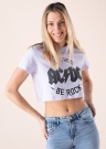 Jaukais, īsa piegriezuma Noisy May T-krekls Fran ir lieliski piemērots siltām vasaras brīvdienām modernai sievietei. Topa priekšpusi ilustrē slavenās rokgrupas AC / DC logotips uz krūtīm. Audumam ir izcils maigums un laba elastība, kas nodrošina lielisku kustību komfortu. Modelis ir 177 cm garš un valkā S izmēru. Materiāls: 100% kokvilna. Krāsa: violeta.