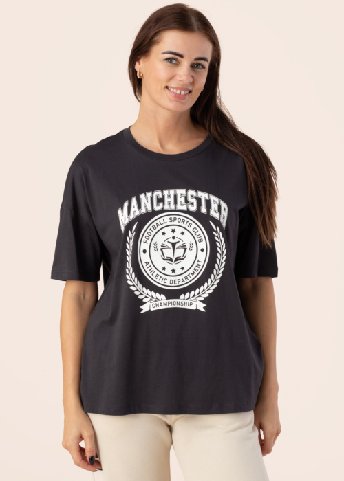 Noisy May sieviešu T-krekls Ida ir lieliska izvēle modernām sievietēm. Tas ir veidots ar apaļu kakla izgriezumu un īsām piedurknēm, kas nodrošina komfortu un brīvību ikdienas gaitās. Krekla brīvais dizains un izteiksmīgais drukas attēls priekšpusē piešķir tam unikālu stilu. Modeles augums ir 176 cm, un viņa valkā S izmēru.