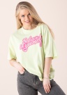Atraktīvs, platāka fasona oversized sieviešu T-krekls no Noisy May zīmola ir piemērots valkāšanai ikdienā. Tā priekšpusi rotā efektīgs, krāsains attēls ar motivējošu uzrakstu. Audumam ir patīkami mīksts, kas valkāšanu padara vēl ērtāku. T-krekls ir viegli kombinējams ar dažādām biksēm un svārkiem. Modele ir 169 cm gara, valkā S izmēru. Materiāls: kokvilna 100%. Krāsa: zaļa.