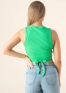 Moderns Noisy May tops ir drosmīgs stila piemērs. Valnīša auduma ar īsāku piegriezumu tops ir bez piedurknēm mīksts un elastīgs. Akcentu piešķir interesants dizains , kā arī malas apakšā ir sasienama josta. Foto: augums 168 cm valkā S izmēru.