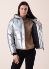 Jaka ar spilgtu un spīdīgu sudraba virsmu ir sievišķīga un izcila izvēle, ir piemērota drosmīgai sievietei, kura vēlas izcelties pelēkās ielās un ienest spilgtumu savā ikdienā. Priekšpusē tā ērti aizveras ar parocīgu rāvējslēdzēju, ko sedz aizsargājoša josla, uz spiedpogām. Ar zemu apkakli un lielu, mājīgu kapuci ar maigu izolāciju, kas pasargā galvu no aukstuma. Sānos ir atvērtas kabatas, kas ir ideāli piemērotas roku sildīšanai. Pagarinātas rievotas malas izvirzās no piedurkņu galiem, lai tās droši turētos uz plaukstas locītavām, neļaujot aukstumam iekļūt iekšpusē. Iekšējā virsma ir klāta ar slidenu poliestera audumu, kas nodrošina komfortu, neaizķeroties aiz apģērba un nodrošinot kustību brīvību. Produkts pieder zīmola BeGreen kolekcijai, kas izgatavota no videi draudzīgiem materiāliem, akcentējot Noisy May apņemšanos radīt ilgi kalpojošus apģērbus. Modeles augums ir 178 cm un valkā S izmēru. Garums no aizmugures līdz apakšai 57 cm. Materiāls: virsma un iekšējā virsma pārstrādāts poliesters 100%, izolācija poliestera šķiedras 100%. Krāsa: sudraba/melna