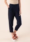 Object bikses Ziggi lieliski piemērotas gan atpūtai, gan nēsāšanai birojā. Bikses aizdarāmas ar rāvējslēdzēju un divām pogām. Vidukļa daļā patīkami elastīga gumija, kas lieliski pielāgojas valkātāja ķermenim. Sānos atvērta dizaina ietilpīgas kabatas, aizmugurē divas imitētas kabatas. Plānais audums ir patīkams ādai un nodrošina komfortu visas dienas garumā. Modeles augums 177 cm, valkā 36. izmēru. Materiāls: poliesters 95%, elastāns 5%. Krāsa: tumši zila.
