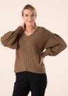 Object džemperis Wythe ar balona veida piedurknēm ir mīksts, silts un ērts. Dziļš V – veida izgriezums kakla daļā komplimentē valkātājas dekoltē. Modeles augums 178 cm, valkā S izmēru. Materiāls: Lenzing ECOVERO viskoze 50%, poliamīds 27%, poliesters 23%. Krāsa: brūna