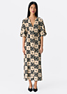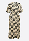 Šī kleita ir sievišķīga un romantiska, izceļoties ar interesantu rakstu un efektīvu dizainu. Tā ir viegla un plāna, padarot to piemērotu gan ikdienas valkāšanai, gan svinīgiem pasākumiem. Kleitai ir pogu aizdare priekšpusē un sasienama josta viduklī. Tā ir izgatavota no LENZING™ ECOVERO™ šķiedras, kas iegūta no sertificētiem atjaunojamiem koksnes avotiem, izmantojot videi draudzīgu ražošanas procesu un ievērojot augstus vides standartus.
