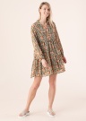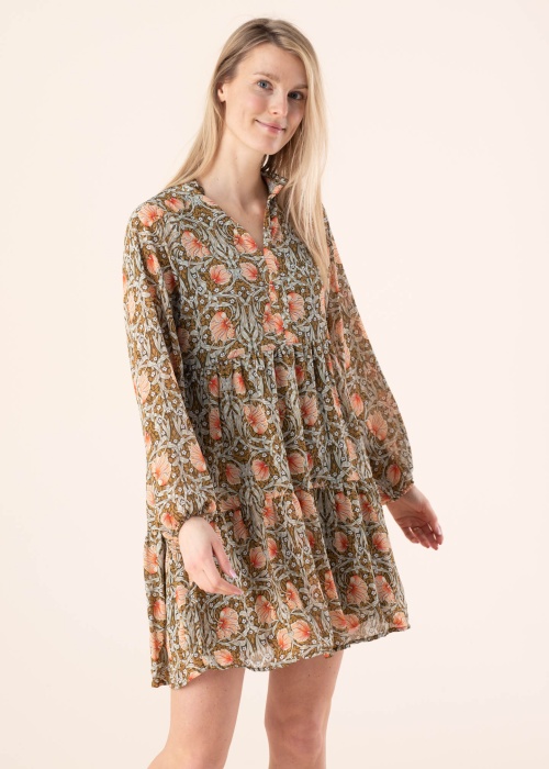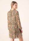 A burta formas piegriezuma Object kleita Steph ir brīva un gaisīga, kurai sievišķību piešķir kleita V-veida kakla un volāni kleitas svārku daļā, savukārt pusgarās piedurknes ir nedaudz caurspīdīgas un apkakli ieskauj glīta bante. Zem kleitas apakškleita. Modeles augums 177 cm, valkā 36. izmēru. Dotā izmēra kleitas garums 84 cm.