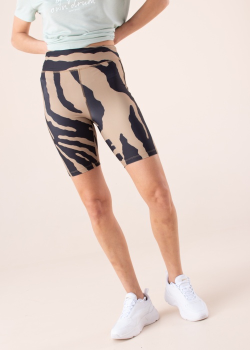 „Object“ šortai „Pose“ su dryžuotu raštu yra siauro kirpimo ir patogūs dėvėti laisvalaikiu. Aukštas liemuo gerai priglunda prie kūno. Derinkite su ilgais marškinėliais, tunika ar sportine mini suknele, kad sukurtumėte jaunatvišką ir elegantišką įvaizdį. Modelis yra 177 cm ūgio ir dėvi S dydžio drabužius.