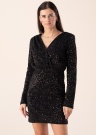 Jauka Object kleita sniedz pārliecības sajūtu. Mirdzoša ar garām piedurknēm kleita ir ar pārlikumu un ar cieši pieguļošas , kā arī valkāšanas komfortu nodrošina materiāla elastīgums. Spīdīgi fliteri padara izteiksmīgāku , kā arī uz pleciem ir plecu spilventiņi. Komplimenti un atzinības pilni skatieni garantēti! Foto: augums 176 cm valkā S izmēru.