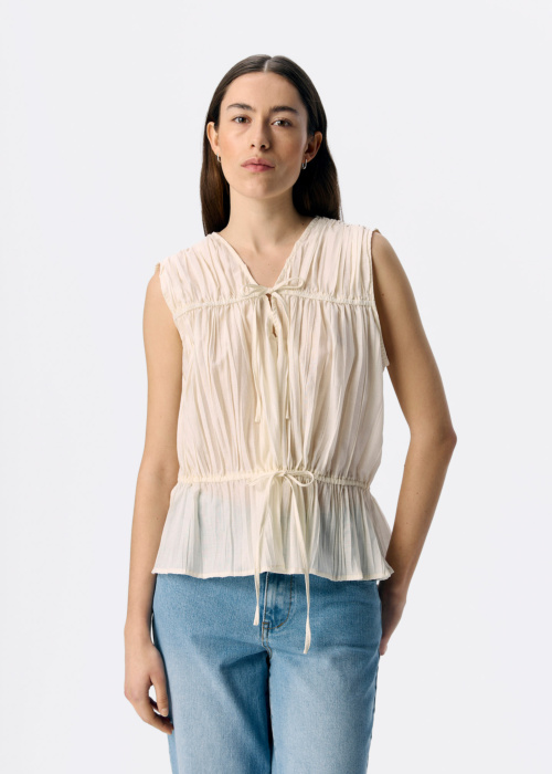 Sieviešu tops Brea ir pievilcīgs un sievišķīgs apģērbs ar elegantu V-veida kakla izgriezumu, kas lieliski piemērots vasaras sezonai. Tas ir aprīkots ar sasienamu jostu apkakles un vidukļa daļā, kas piešķir papildu šarmu un izceļ sievietes siluetu. Tops ir izgatavots no LENZING™ ECOVERO™ šķiedras, kas iegūta no sertificētiem atjaunojamiem koksnes avotiem, izmantojot videi draudzīgu ražošanas procesu, tādējādi ievērojot augstus vides standartus.