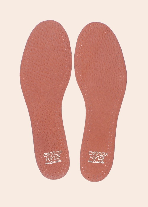 OmaKing ādas zolītes samazina sviedru smaku un ir ar vieglu polsterējumu. Izgatavots no cūkas ādas un aktivētās ogles lateksa, lai palīdzētu novērst sviedru smaku. Zoles labi absorbē mitrumu un ātri izžūst.