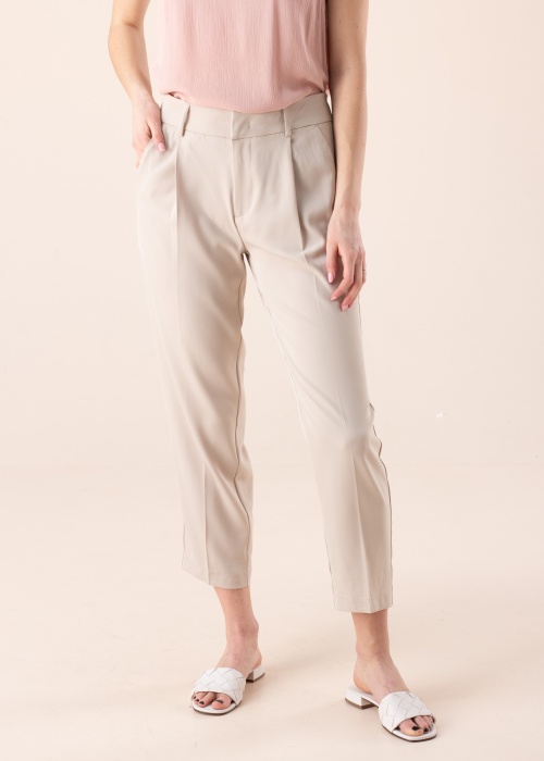 Only bikses Alma ir gana laba izvēle pavasara-vasaras pasākumiem, lai justos gan ērti, gan izteiksmīgi! Augstāka jostas daļa un piegriezums līdz potītēm piešķir stilīgu raksturu. Bikses priekšpusē aizdarāmas ar pogu, diviem metāliskiem āķiem un rāvējslēdzēju. Priekšpusi rotā skaists krokojums augšpusē un atvērtas kabatas sānos, aizmugurē divas imitācijas kabatas. Audums ar zīdainu pieskārienu ādai ir patīkami maigs. Modeles augums 177 cm, valkā 36. -32. izmēru.