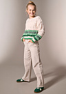 Meiteņu bikses Hope ir modernas un stilīgas, izceļoties ar platiem staru galiem un paaugstinātu jostasvietu. Tās ir izgatavotas no samta, kas padara tās lieliski piemērotas ikdienas valkāšanai. Biksēm ir josta, kas aizdarāma ar āķi un rāvējslēdzēju gan priekšpusē, gan aizmugurē. Aizmugurē ir pievienots ādas marķējums, kas piešķir papildu eleganci un izsmalcinātību.