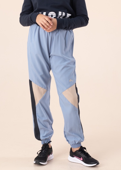 Jea no Only ar maigu krāsu kombināciju ir brīnišķīgas rotaļās brīvā dabā vai citās aktīvās aktivitātēs. Plaša griezuma biksēm ir ērta gumijas krāsa, un ap potītēm ir arī smalkas gumijas. Sānos ir kabatas starp šuvēm, un bikses ir dekorētas ar tumši ziliem paneļiem kāju ārpusē un smilškrāsas trīsstūriem uz ceļiem, radot jauku harmoniju starp krāsām. Modelis ir 142 cm garš un valkā 146-152 izmēru. Materiāls: poliesters 90%, elastāns 10%. Krāsa: gaiši zila