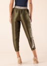 Personalizētās un viegli pamanāmās Only bikses Jelena piesaista uzmanību ar stilīgu spīdīgu virsmu, kas veidota pievilcīgā divtoņu krāsā. Elastīgā gumijas jostasvieta ir regulējama priekšpusē ar aukliņām, un 7/8 garuma staru galos ir arī mīkstas gumijas. Modelis ir 177 cm garš un valkā S/32 izmēru. Materiāls: 50% viskoze, 50% neilons. Krāsa: zaļa/bēša