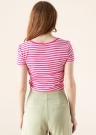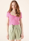 Jauneklīga Only blūze izcels Tevi no pelēkās masas. Ar svītrainu rakstu mīksta blūze ir ar apaļu kakla izgriezumu un ar īsāku piegriezumu , kā arī valkāšanas komfortu nodrošina materiāla elastīgums. Saskaņo ar dažādiem apģērbiem un radi jaunus stilus! Foto: augums 174 cm valkā S izmēru.