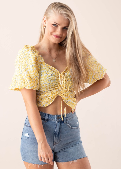 Only blūze Hollija ir jauneklīga. Blūze ar kuplām piedurknēm ir īsa garuma, un priekšā atrodas vertikālas tuneļa saites, kas ļauj priekšpusē izveidot skaistu dizainu. Izbaudi garastāvokli uzlabojošu krāsu enerģiju! Modele ir 169 cm gara, valkā S izmēru.