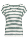 Only Women blūze Lira ir jauks un stilīgs apģērbs, kas lieliski papildinās jebkuru garderobi. Tā izceļas ar svītrainu rakstu un īsām piedurknēm, kas piešķir tai modernu un elegantu izskatu. V-veida kakla izgriezums piešķir blūzei sievišķīgu pieskārienu, padarot to piemērotu gan ikdienas, gan svinīgākiem pasākumiem.