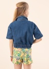 Džinsu blūze Sophie Only piešķir īpašu akcentu apģērbam - ar klasisku atloku apkakli, bet ar īsāku ķermeņa daļu, ar ērtu gumijas platumu apakšējā malā un preses stiprinājumu priekšpusē. Divas krūšu kabatas ar stilīgiem atlokiem un piedurknēm ar plašu griezumu. Modelis ir 146 cm garš un valkā 146. izmēru. Materiāls: BCI apstiprināta kokvilna 99%, elastāns 1%. Krāsa: zila