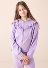 Jauka Only jaka der valkāšanai ikdienā. Meitenīga un kapuce jaka- ar patīkamu pieskārienu un ar kapuci. Apburošas rišas padara izteiksmīgāku un piedurkņu galos un apakšmalā ir valnīši. Izgatavots no atbildīgi audzētas kokvilnas ar BCI apzīmējumu. Foto: augums 150 cm valkā 146 izmēru.