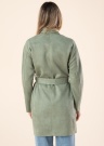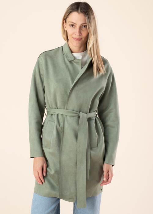 Jauks Only mētelis rada svaigu un gaumīgu kopskatu. Sievišķīgs un ar atlokamu apkakli mētelis ir samts un viegls. Priekšpusē ir bez sastiprinājuma , viduklī ir sasienama josta un sānos ir atvērtas kabatas. Iekšpuse nav oderēta valkāšanas komfortu nodrošina materiāla elastīgums. Foto: augums 177 cm valkā S izmēru.