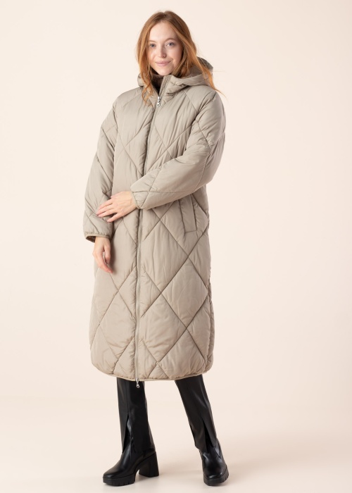 Vienkāršs un urbānistisks Only pavasara-rudens mētelis der valkāšanai ikdienā. Mīksts un silts pavasara-rudens mētelis ir ar taisnu siluetu un ar garumu zem ceļgala. Priekšpusē ir aizdare ar ar rāvējslēdzēju, kabatas ir ar spiedpogām un apakšējā mala ir brīvi krītoša. Kapuce ir fiksēta un piedurkņu galos ir gumijas. Foto: augums 174 cm valkā S izmēru.