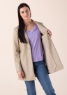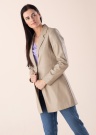 Ādas imitācijas virsējā apdare, izteiksmīgais un sievišķīgais Only mētelis Saramy ir ideāls valkāšanai brīvajā laikā, iestājoties pavasara-rudens sezonai. Mētelim raksturīgs īsāks piegriezums un efektīgi plaša atloka apkakle. Priekšpusē šis vienkāršais mētelis aizdarāms ar fiksācijas pogu. Mēteļa iekšējo virsmu klāj gluda poliestera odere, kas ērti slīd pāri apakšējā slānī valkājamajam apģērbam. Nenoliedzami mūsdienīga un moderna izvēle sievietei, kura vēlas izskatīties moderna un būt pamanāma. Modeles augums 176 cm, valkā S izmēru. Mēteļa garums no apkakles līdz apakšmalai 81 cm