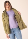 Plāna Only zīmola jaka New Starline ir patīkama un viegla, piemērta vēsākiem laikapstākļiem. Priekšpusē rāvējslēdzējs, ko aizsargā atloks ar spiedpogām. Augstā apkakle ar ērtu kapuci pasargā no vēja un nepatīkamiem laikapstākļiem. Viduklis regulējams ar auklām un fiksējams ar stoperiem. Divas sānu kabatas ar atlokiem ar spiedpogām, piedurkņu galos spiedpogu aizdare, apakšmala brīvi krīt. Iekšpusē slīdīga poliestera odere. Modele ir 178 cm gara, valkā S izmēru. Garums no apkakles līdz apakšmalai 70 cm.