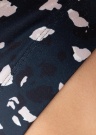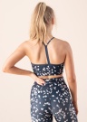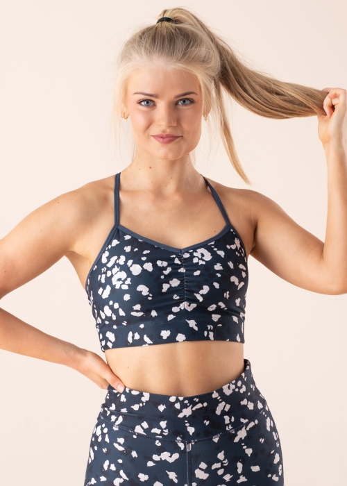 Sporta krūšturim Only Play Bagge ir vidējs atbalsts. Plānās pleca siksnas savienojas aizmugurē, krūšu spilventiņi ir noņemami, un apakšā ir ērts gumijas platums. Modelis ir 169 cm garš un valkā S izmēru. Materiāls: poliesters 77%, elastāns 23%. Krāsa: tumši zila / balta / rakstaina