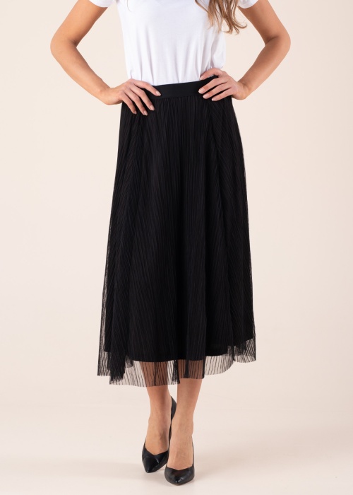 Jauki, pilnīgi sievišķīgi svārki ir brīnišķīgi pieklājīgākiem pasākumiem. Augšējais audums ir efektīvi caurspīdīgs un skaisti gaisīgs un gaistošs. Josta ir izgatavota no elastīgas gumijas, kas ērti pievelkas valkātāja ķermenim. Tomēr apakšsvārkim ir izcils maigums un pieskāriens ādai. Garāks stils pauž eleganci. Modelis ir 178 cm garš un valkā S izmēru. Kopējais garums 88 cm. Materiāls: 100% poliesters.Krāsa: melna.