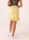 Puķaini Only svārki Alina ir ideāli piemēroti vasaras sezonai, viegli un gaisīgi. No aizmugures ir elastīga gumija, aizdare kreisajā malā. Modeles augums 178 cm, valkā S izmēru. Kopējais garums šim izmēram ir 51,5 cm.