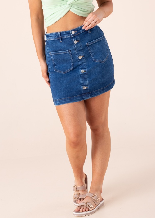 Only džinsa svārki AMAZING iepriecina valkātāju ar nevainojamu elastību un komfortu. Mini garuma svārkiem priekšā ir pogas, no kurām divas augšējās ir atveramas, bet apakšējās – dizaina elementi. Priekšpusē atrodas divas džinsa kabatas. Modele ir 169 cm gara, valkā S izmēru. Kopējais garums šim izmēram ir 40,5 cm.