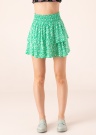 Jauki Only svārki der valkāšanai vasarā. Ērti un ar ziedu rakstu svārki ir ar elastīgu jostasvietu un brīvi krītoši. Svārku daļu veido plaši volāni. LENZING ™ ECOVERO ™ šķiedra, kas iegūta no sertificētiem atjaunojamiem koksnes avotiem, izmantojot videi draudzīgu ražošanas procesu un ievērojot augstus vides standartus. Foto: augums 177 cm valkā 36 izmēru.
