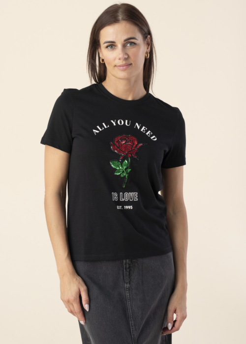 Only Women T-krekls ir lielisks apģērbs ar īsām piedurknēm un apaļu kakla izgriezumu, kas piešķir tam klasisku un stilīgu izskatu. Krekls ir izgatavots no elpojoša un mīksta materiāla, kas nodrošina komfortu visas dienas garumā, un tā interesantais raksts piešķir tam unikālu šarmu. Regular Fit piegriezums padara to piemērotu dažādām ķermeņa formām, un modeles garums ir 176 cm, nēsājot S izmēru.