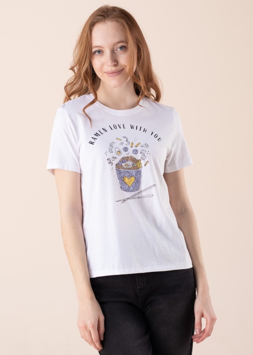 Klasiska piegriezuma Only T-krekls Kita Life ir izteiksmīgs savā vienkāršībā papildināts izteiksmīgu zīmējumu priekšpusē, izgatavots no kokvilnas ar BCI atzīmi. Uz krūtīm ir ar flitriem rotāts zīmējums un teksts. Modeles augums 174 cm, valkā S izmēru.