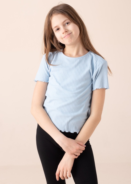 Vienkāršs Only t-krekls der dažāda rakstura dienām. Ar īsāku piegriezumu t-krekls mīksts un elastīgs , kā arī virspusē ir reljefa raksts. Foto: augums 150 cm valkā 146 izmēru.