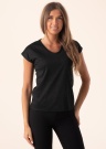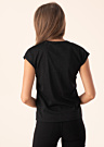 Only T-krekls Silvery ir neformāli svinīgs ar savu dzirkstošo diega papildinājumu, kas piemērots gan darba dienām, gan rosīgiem vakariem. Taisna piegriezuma blūzei ir V-veida kakla izgriezums un īsas vāciņa piedurknes, un materiāla elastība papildina valkāšanas komfortu. Modelis ir 178 cm garš un valkā S izmēru. Materiāls: poliesters 60%, viskoze 24%, metāla šķiedra 16%. Krāsa: melna