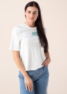 Only T-krekls Ulla ir vienkāršs un ikdienišķs. Plašākam piegriezumam ir apaļš kakla izgriezums un garākas īsās piedurknes un pieticīga priekšpuse. Modele ir 176 cm gara un valkā S izmēru. Modele ir 176 cm gara un valkā S izmēru. Materiāls: 100% kokvilna. Krāsa: balta